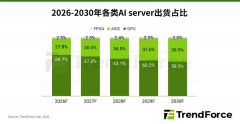 TrendForce集邦咨询表示,随着以Google(谷歌)、Amazon(亚马逊)等CSP为首的自研芯片态势扩大,预估ASIC AI Server占整体AI Server的出货比例将从2026年的27.8%,上升至2030年的近40%。