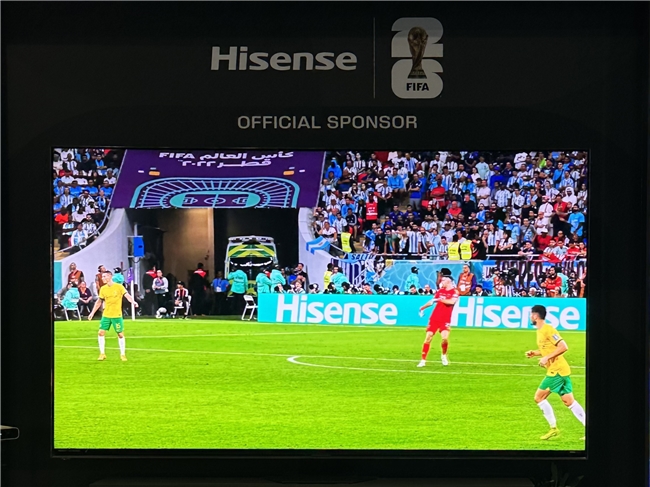 本届IFA展上,海信与杜比携手,采用116英寸RGB-Mini LED电视UX进行首次杜比Vison2.0的公开技术演示,以震撼的细腻画质呈现出的球赛,令人“不在现场,胜似现场”。超高峰值亮度带来的细节冲击,营造出堪比现场看球的满分真实感。