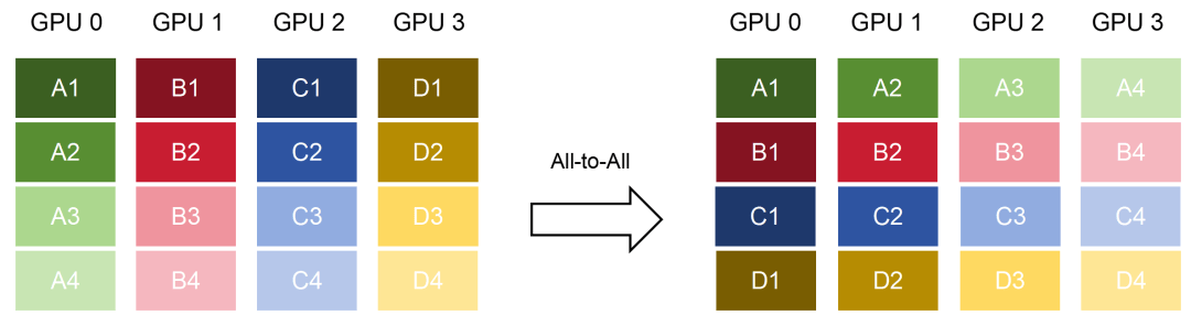 再以应用更广泛、也标志着AI真正投入实战的推理场景,如目前越来越火的多模态大模型推理为例,虽然它不需要做梯度同步,但All-Reduce性能提升仍可能作用于多节点推理的协调或一致性生成中的多GPU同步; All-to-All性能提升在推理中更加关键,其生成速度(或等待时间)、服务吞吐(单位时间能否服务更多客户)、应用规模(能否支持更多模型或更长序列)等关键指标,都可借势得到进一步优化。